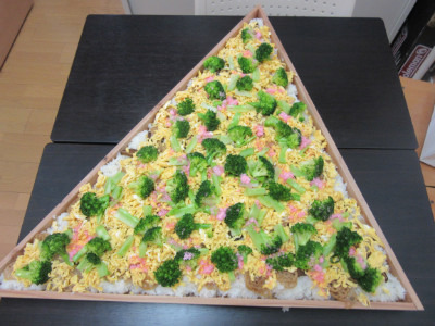 パーティのメインはくれよん名物、大きなツリー型のちらし寿司!!